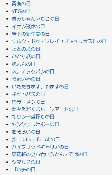 今日は何の日 (出典 雑学ネタ帳)![]() ![]() ![]() ![]() 世界平和記念日・第一次世界大戦停戦記念日(11月11日 記念日) 1918年(大正7年)のこの日、ドイツとアメリカ合衆国が停戦協定に調印し、4年あまり続いた第一次世界大戦が終結した。 主戦場となったヨーロッパの各国では、この日を祝日としている。この日を忘れず、大戦争を再び起こさないようにしようと設けられた。「世界平和デー」「世界大戦休戦記念日」ともいう。アメリカでは「在郷軍人デー」で式典に軍帽をかぶって出席し、イギリスでは「ポピー・デー」といって協会で礼拝する。その後、第二次世界大戦が起きてからは、区別するために「第一次世界大戦休戦記念日」ともいう。 |