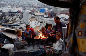 ![]() パレスチナ自治区ガザ北部ジャバリヤで2025年11月6日、たき火に集まる人たち=ロイター |