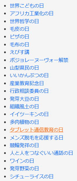 今日は何の日 (出典 雑学ネタ帳)![]() ![]() 世界こどもの日(11月20日 記念日) 1954年(昭和29年)の国連総会で制定。国際デーの一つ。「世界の子どもの日」ともされる。 英語表記はもともと「Universal Children's Day」であったが、現在では「World Children's Day」である。 1959年(昭和34年)のこの日に「子どもの権利に関する宣言」が採択され、また、1989年(平成元年)のこの日に「子どもの権利に関する条約」が採択された。これらのことから「世界こどもの日」は11月20日とされている。 ![]() 世界こどもの日 子どもの世界的な相互理解、子どもの福祉を増進させることが目的。国連では各国政府が適当と考える日を選んで「子どもの日」とするように勧告しており、日本では古来からある「端午の節句」に由来した5月5日の国民の祝日「こどもの日」を当てている。 また、6月1日は1925年(大正14年)8月にスイスのジュネーブで開かれた子どもの福祉世界会議で制定された「国際こどもの日」(International Children's Day)となっている。 世界の子どもについて 国連の推計によると、2010年(平成22年)の15歳未満の子どもの数は約18億4200万人で、総人口の約69億1600万人の26.6%を占めている。 総人口に占める子どもの割合は地域によって異なり、先進地域では16.4%だが、開発途上地域では28.9%と大きな差がある。日本における子どもの割合は、2010年の国勢調査結果で13.2%と先進地域の中でも最も低いランクとなっている。 |