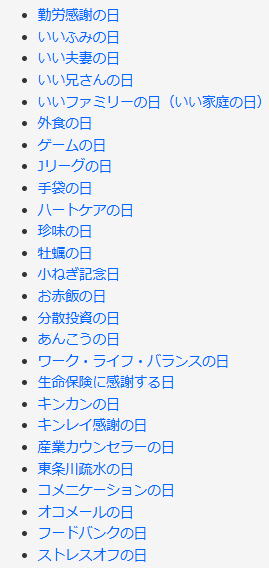今日は何の日 (出典 雑学ネタ帳)![]() ![]() 勤労感謝の日(11月23日 国民の祝日) 「国民の祝日」の一つ。1948年(昭和23年)に公布・施行された「祝日法」で制定。「勤労をたっとび、生産を祝い、国民たがいに感謝しあう」ことを趣旨としている。 ![]() 国民の祝日 農業国家である日本は、古くから神々に五穀の収穫を祝う風習があった。この日は戦前において宮中祭祀の一つ「新嘗祭」(にいなめさい・しんじょうさい)の日であった。 ![]() 米農家 新嘗祭とは、天皇が新しく収穫された新穀を食べて、その年の収穫を感謝する儀式である。これが第二次世界大戦後のGHQの占領政策によって天皇行事・国事行為から切り離される形で改められたものが「勤労感謝の日」である。 新嘗祭は1872年(明治4年)までは旧暦11月の2回目の卯(う)の日に行われていた。1873年に太陽暦(グレゴリオ暦)が導入されたが、そのままでは新嘗祭が翌年1月になって都合が悪いということで、新暦11月の2回目の卯の日に行うこととした。それが1873年では11月23日だった。 しかし、翌1874年(明治7年)からは11月23日に固定して行われるようになった。11月23日という日付自体に深い意味はなく、たまたま日本が太陽暦を導入した年(1873年)の11月の2回目の卯の日が11月23日だっただけのことである。 休日としての歴史は1873年(明治6年)公布の太政官布告「年中祭日祝日ノ休暇日ヲ定ム」から続いている。一時は5月1日のいわゆる「メーデー」に「勤労感謝の日」を移動させる案が浮上したが、現在は頓挫している。 「勤労感謝の日」に由来する記念日は多く、「外食の日」「小ねぎ記念日」「珍味の日」「ワーク・ライフ・バランスの日」「生命保険に感謝する日」「キンカンの日」「キンレイ感謝の日」「お赤飯の日」「産業カウンセラーの日」「フードバンクの日」「ストレスオフの日」「いい入札の日」「ラク家事の日」「ねぎらいの日」などがある。 |