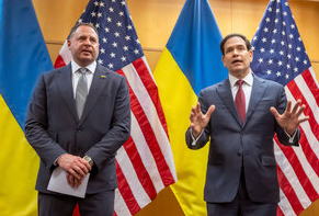![]() スイスのジュネーブで2025年11月23日、記者団に向かって話すウクライナの イエルマーク大統領府長官(左)とルビオ米国務長官=AP |