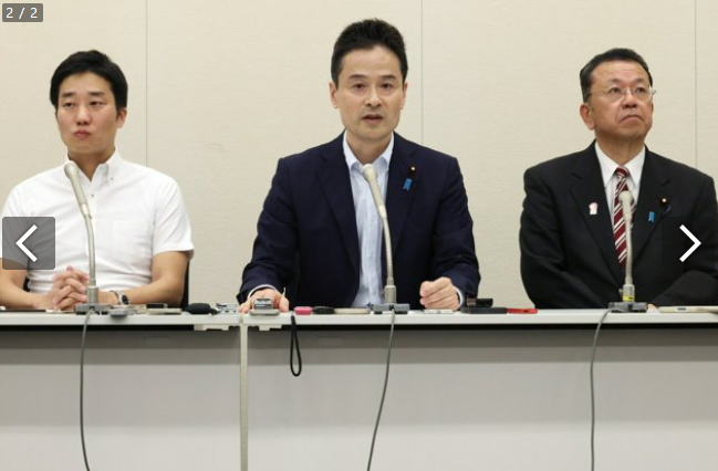 ![]() 衆院自民党会派入りで調整が進む(左から)守島正衆院議員、斉木武志衆院議員、阿部弘樹衆院議員 =2025年9月8日午後2時3分、国会内、岩下毅撮影 |