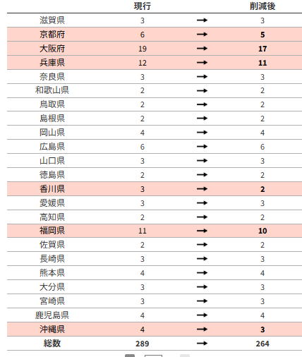 | 東京3減、大阪2減 小選挙区の削減、20都道府県に影響 自民試算 朝日新聞の記事です。 高市政権が掲げる「衆院議員定数(465)の1割削減」をめぐり、289の小選挙区の25議席分について、削減対象の都道府県をまとめた自民党の試算が2日、判明した。 東京都の3減、大阪府の2減など47都道府県のうち計20都道府県が対象となっている。 最新の国勢調査の結果などに伴い、変更が生じる可能性がある(以下、省略) 本日の新聞の1面のトップ記事です。 人口に比例して算出されたものと思われます。 今後どのように検討されるのでしょうか。 |