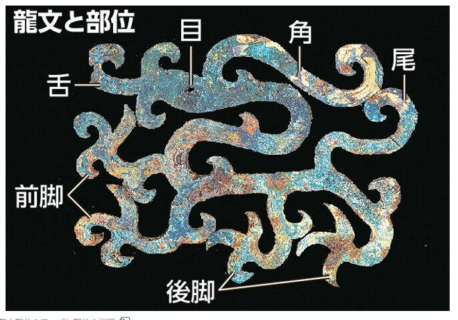 | 「国宝に匹敵」、古墳時代のよろいの一部か 龍の文様を透かし彫り 朝日新聞の記事です。 龍の姿が透かし彫りされた古墳時代の金銅製金具が、群馬県高崎市の古墳から出土していたことが明治大学博物館の調査でわかった。 古代の金工技術の粋を集めたと評価される誉田(こんだ)丸山古墳(大阪府羽曳野市)出土の鞍(くら)金具(国宝)とほぼ同じ文様で、よろいの飾りの一部とみられる。 専門家は「国宝の鞍金具に匹敵する、当時の最先端の工芸品だ」と話す。(以下、省略) 写真で龍の部位が示されております。 どこに根拠があるのでしょうか、「角」などは想像できません。 |