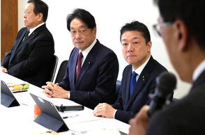 ![]() 自民党の国防部会・安全保障調査会合同会議に臨む安保調査会会長の小野寺五典・元防衛相(左から2人目)ら=2025年11月20日午前8時3分、東京・永田町の党本部、岩下毅撮影 |