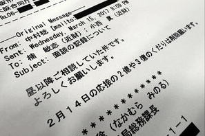 ![]() 財務省理財局の中村稔総務課長(当時)からのメールには「2億や3億のくだりは削除願います」と記されていた。 |