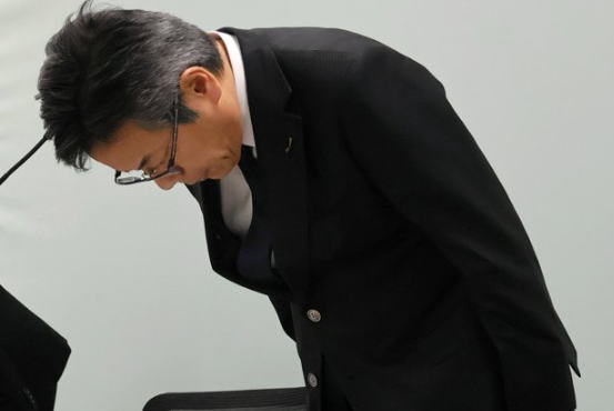 ![]() 会見で謝罪する中部電力の林欣吾社長=2026年1月5日、名古屋市 |