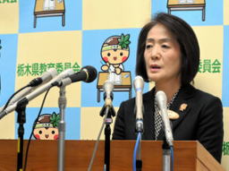 ![]() 定例記者会見で話す栃木県の中村千浩教育長 =2026年1月8日、栃木県庁、津布楽洋一撮影 |