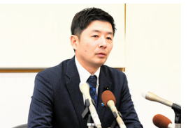 ![]() 記者会見を開く山本建氏=2026年1月24日、福井県鯖江市、平井良和撮影 |