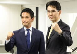 ![]() 中道改革連合代表選に立候補を届け出た後の記者会見前、写真撮影に臨む階猛氏(右)と小川淳也氏 =2026年2月12日午前10時32分、東京・永田町の党本部、岩下毅撮影 |