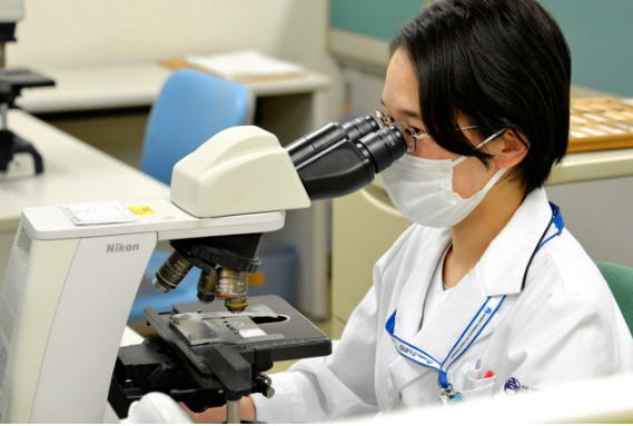 がん研有明病院では2人の専門医と7人の細胞検査士が顕微鏡で細胞の状態を調べている=同病院提供 |