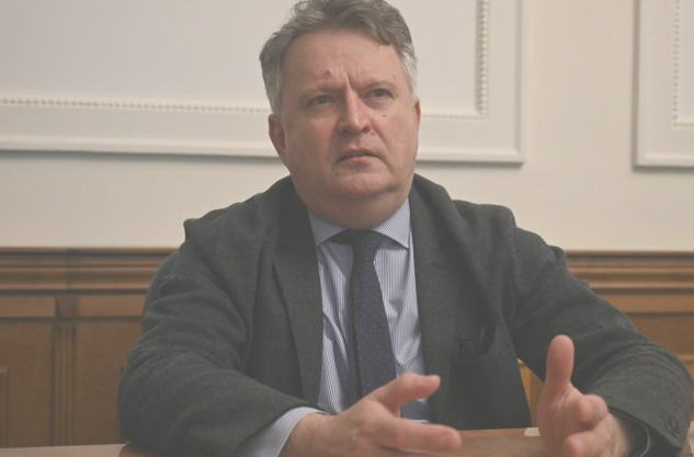 ![]() 朝日新聞の取材に応じたウクライナのキスリツァ大統領府第1副長官 =2026年2月27日、キーウ、藤原学思撮影 |