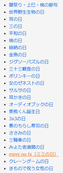 今日は何の日 (出典 雑学ネタ帳)![]() ![]() 雛祭り・上巳・桃の節句(3月3日 年中行事) 「雛祭り(ひなまつり)」は、女の子の健やかな成長を願う伝統行事。3月3日は「上巳(じょうし)」または「桃の節句」と呼ばれる。 一般的には「桃の節句」と呼ばれ、女の子のいる家庭では、雛人形を飾り、桃の花・菱餅・雛あられを供えて祀り、白酒や寿司などの飲食を楽しむ節句祭りが行われる。 ![]() 雛飾り 雛祭りは江戸時代までは和暦(旧暦)の3月の節句(上巳、桃の節句)である3月3日(現在の4月頃)に行われていた。明治の改暦以後はグレゴリオ暦(新暦)の3月3日に行なうことが一般的になった。東北・北陸など一部の地域では、旧暦3月3日または新暦4月3日に祝う文化が残っている。 3月3日の「上巳(じょうし)」は「じょうみ」とも読み、1月7日の「人日(じんじつ)」、5月5日の「端午(たんご)」、7月7日の「七夕(しちせき)」、9月9日の「重陽(ちょうよう)」とともに「五節句」の一つである。上旬の巳(み)の日の意味であり、元々は3月上旬の巳の日であったが、古来中国の三国時代の魏より3月3日に行われるようになったと言われている。旧暦の3月3日は桃の花が咲く時期であるため「桃の節句」と呼ばれる。 上巳(桃の節句)の日には、紙製の小さな人形に穢れ(けがれ)を移して川や海に流して、災厄を祓う(はらう)祭礼を行っていた。この「流し雛」の風習は平安時代からあり、現在でも日本各地にその風習が残っている。その人形が次第に精巧なものになって流さずに飾っておくようになり、雛祭りとして発展していった。 雛祭りは始めは宮中や貴族の間で行われていたが、やがて武家社会でも行われるようになり、江戸時代には女の子の「人形遊び」と「節句の儀式」が結び付けられ、庶民の行事となった。 元々は、5月5日の「端午の節句」とともに男女の区別なく行われていたが、江戸時代ごろから、豪華な雛人形は女の子に属するものとされ、端午の節句は菖蒲(しょうぶ)の節句とも言われることから、尚武(しょうぶ:武道・武勇を重んじること)にかけて男の子の節句とされるようになった。 |