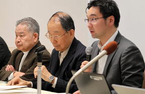 ![]() 集会後に記者会見する全国霊感商法対策弁護士連絡会の弁護士ら =2026年3月7日午後6時16分、東京都千代田区、北野隆一撮影 |