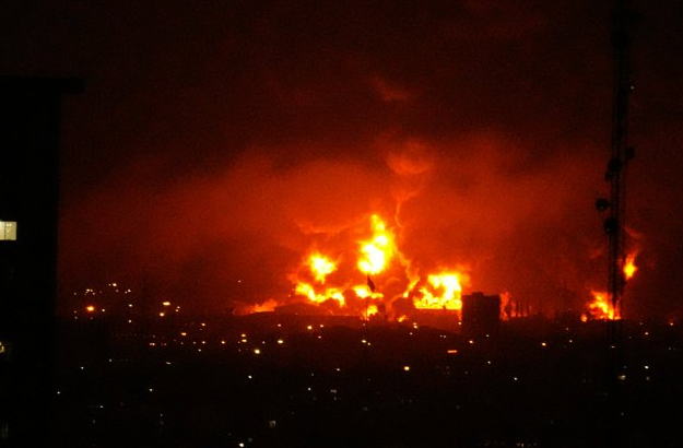 ![]() 2026年3月7日、イランの首都テヘラン南部の燃料貯蔵施設から燃え上がる炎=AP |