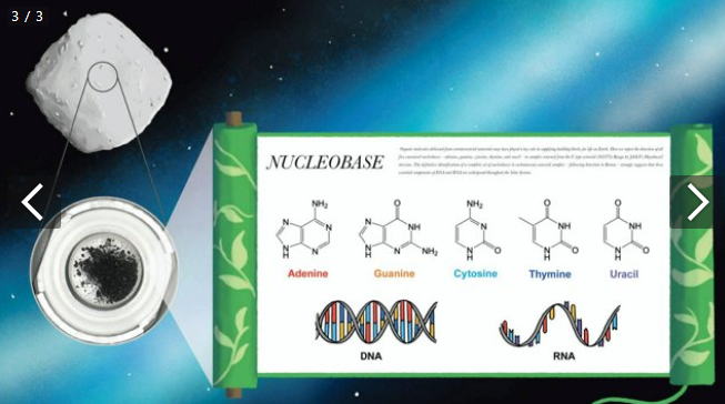 ![]() 小惑星リュウグウの砂からはDNAやRNAを構成する、アデニン、グアニン、シトシン、チミン、 ウラシルの核酸塩基5種類すべてが発見された=JAMSTECなどの発表資料から |