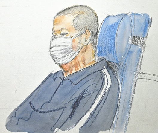 ![]() 車いすで京都地裁に入廷する青葉真司被告=2024年1月25日、絵・岩崎絵里 |