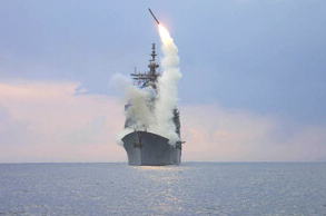 ![]() 米艦から発射される巡航ミサイル「トマホーク」=ロイター |