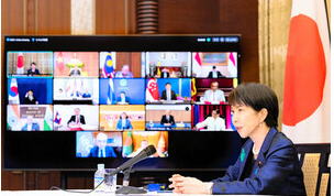 ![]() アジア・ゼロエミッション共同体(AZEC)の首脳会合にオンラインで出席する高市早苗首相=内閣広報室提供 |