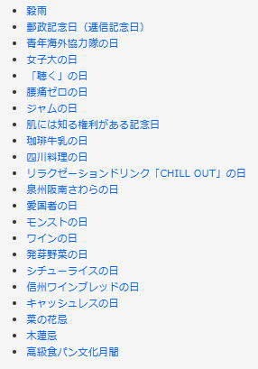 今日は何の日 (出典 雑学ネタ帳)![]() 穀雨(4月20日頃 二十四節気) 「穀雨(こくう)」は、「二十四節気」の一つで第6番目にあたる。現在広まっている定気法では太陽黄経が30度のときで4月20日頃。 「穀雨」の日付は、近年では4月19日または4月20日であり、年によって異なる。2026年(令和8年)は4月20日(月)である。 「穀雨」の一つ前の節気は「清明」(4月5日頃)で、一つ後の節気は「立夏」(5月5日頃)である。「穀雨」には期間としての意味もあり、この日から、次の節気の「立夏」前日までである。西洋占星術では「穀雨」が金牛宮(きんぎゅうきゅう:おうし座)の始まりとなる。 この頃には田畑の準備が整い、それに合わせて春の雨が降る。この春雨は穀物の成長を助けることから「穀雨」と呼ばれる。種まきや育苗に適した時期である。<br> ![]() 春の風景 江戸時代の暦の解説書『こよみ便覧(べんらん)』には「春雨降りて百穀を生化すればなり」と記されている。また、この頃から降雨量が増え、日差しも強くなる。<br> 「穀雨」の終わり頃(「立夏」直前:5月2日頃)に「八十八夜」がある。「八十八夜」は、季節の移り変わりの目安となる「雑節」の一つで、「立春」を起算日(第1日目)として88日目(「立春」の87日後の日)にあたる。「八十八夜」に摘んだ茶は上等なものとされ、その日にお茶を飲むと長生きするともいわれている。 |