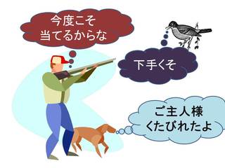 下手な者でも数多く試みておれば、まぐれで当たることがある。