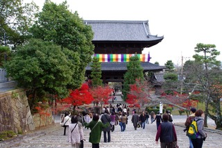 ご主人のコメント 真如堂の紅葉を見た後、直ぐ近くの金戒光明寺に向かいました。 バスガイドさんの話によると、JR東海の2010年「そうだ 京都、行こう」の盛秋キャンペーンのポスターに金戒光明寺の紅葉が採用されたので、多くの人が訪れるようになったとのことでした。 金戒光明寺に辿り着いた時には陽射しが無くなっていて、残念ながら紅葉の見栄えが良くありませんでした。 金戒光明寺を後にして、バスでホテルに着いた時には薄暗くなっていました。 先ずは紅葉で有名な永観堂のライトアップを見ようと直ぐにタクシーに乗ったのですが、永観堂に着いた時は、既に受付まで長蛇の列で入門するのに20分位を要しました。 清水寺も多くの人で混雑していましたが、思ったよりもスムースに本堂に辿り着けました。 清水寺は永観堂と共に紅葉の人気スポットだけ有って、ライトアップの素晴らしい場所は芋の子を洗うような状態でした。 ライトアップの写真をいっぱい撮ったのですが、どの寺も三脚の使用が禁止されており、且つ混雑の人の合間からの撮影が多く、撮った写真は殆ど手振れでぼけていてがっかりでした。 金戒光明寺の写真と、手振れで見難い写真も有りますがライトアップの写真を送ります。 |