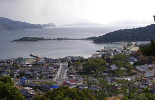 | 研究路からの眺め;御手洗湾の中央後方に「かんぽの宿光」。 | ![]() |