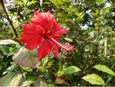 八重山諸島周遊の旅 その4(由布島) ご主人のコメント 由布島は、海流によって砂が堆積しで出来た海抜1.5mの小さな島で、島全体が亜熱帯植物園になっています。 西表島から400mほどの島へは、海の浅瀬を観光名物の水牛車にゆられながら渡りました。 さっそく、沖縄産のオリオンビールや郷土料理で昼食を済ませて園内を散策しました。 園内には南国の草花が100種以上もあるそうで、鮮やかな色とりどりの花に出会うことが出来ました。 |