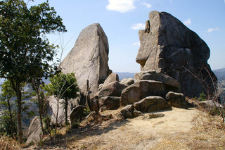 | 城山の南西に延びる尾根上の夫婦岩(高さ7.9mと8.5mの二つ岩)。 | |