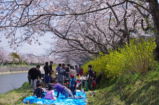 そして、この時期、河川敷の菜の花や、桜の木の下のレンギョウも満開となり見事な彩りを見せてくれます。