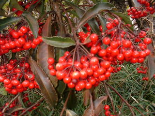 ![]() ![]() 写真は、我が家の庭の万両です。 陰で実をつけているためか、鳥に食べられずみごとに実をつけております。 |