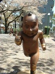 桜並木に「せんとくん」?府中の童子像 新聞によりますと、「平成遷都1300年祭」のマスコットキャラクターとして話題を集める「せんとくん」の作者でもある彫刻家の薮内佐斗司氏が13年前に制作をした「童々広場」という作品だそうです。 以前から私は、奇妙な(気持ちの悪い:作者には失礼)像であると思っておりました。 昨日取材に行ったのですが、私と同じように何人かの人が見物に来ておりました。 昨日も夏のように暑い一日でした。 本日も暑くなりそうです。 日焼けに注意をしましょう。 まずは取材をしてきましたので、写真をご覧ください。 |