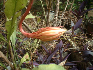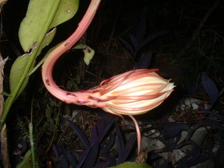 | 月下美人 我月下美人が家の月下美人が咲きました。 調べてみると、サボテン科の多肉植物でメキシコなどの中南米が原産だそうです。 花が咲き出すまでに3年くらいかかるようですが、夜中にしか咲かず朝になったらしぼんでしまうので予想を立てて夜をじっと待つことになります。 それにしても、月下美人の語源の由来は何でしょうか。 花のあと、花びらは天ぷらにして食べられるそうです。 |