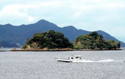 ![]() 落札された無人島(手前の細長い島)。 上(南側)の島は工業塩の在庫基地 になっている ![]() 落札された無人島。後ろは江田島 ![]() |