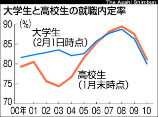 大学生・高校生の就職内定率低水準昨日は、一日中晴れのよい天気で気温も上がりました。