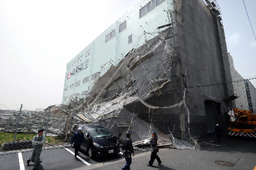 | 強風で崩れ落ちたビルの塗装工事の足場=21日午前、東京都江東区新木場 | ![]() |