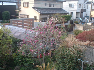 | 写真は我が家の庭の木蓮です。 2階の窓から |