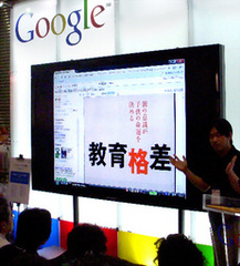 ![]() 8日始まった書籍関連の見本市で、 グーグルの出展ブースには出版 関係者が詰めかけた= 東京ビッグサイト(アサヒコムより) |