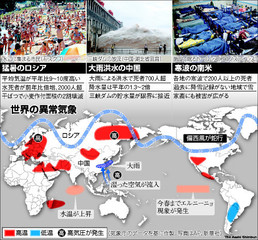 | 世界の気象が変だ 連日猛暑が続いている日本ですが、世界に目をやると各地を異常気象が襲っているようです。 ロシアは記録的な暑さに見舞われ、中国は大雨続き、季節が逆の南米では寒波が猛威をふるい、各地で多くの死者が出ている模様です。 原因の一つ、上空で吹く偏西風の異変とさていますが、自然は生きております。 中国が急速に発展をしておりますが、環境破壊につながることのないようにして欲しいものです。 我々も日常の生活において、自然にあまり逆らわないようにしたいものです。 たとえば、エアコンをなるべく使用しないなどです。 しかし熱中症で倒れる人が多く出ております。 特に、お年寄りの方はエアコンを適度に使用してください。 |
