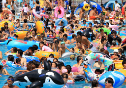 ![]() 猛暑で混雑する「としまえん」のプール。22日の入場者は1万6千人を超え、今年2番目の入りだった=東京都練馬区(アサヒコムより) |