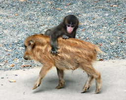 ![]() ウリ坊によじのぼる子ザルのみわちゃん =福知山市動物園(アサヒコムより) ![]() ウリ坊にしっかりとしがみつく子ザルのみわちゃん=福知山市動物園(アサヒコムより) |