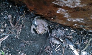 ![]() 写真は、我が家の敷物の下で休眠を しているアマガエルです。 可哀そうに思いましたが、出演をして もらいました。 こぶし大くらいの大きさです。 シーズンになると、子供たちが庭を ぴょんぴょんと跳ね回ります。 |