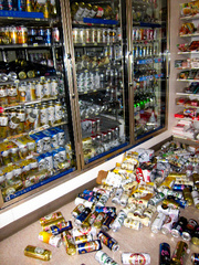 | 商品が散乱するコンビニエンスストアの店内=11日午後2時53分、仙台市青葉区(アサヒコムより、以下同じ) | ![]() |