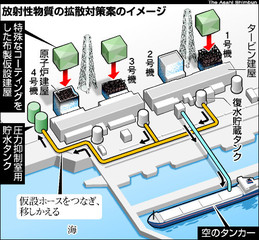 | 建屋、特殊布で覆う案 内閣、放射性物質の飛散防止に 朝日新聞の記事です。 東京電力福島第一原発で、建屋が吹き飛んだ1、3、4号機に、特殊な布をかぶせて放射性物質の飛散を防ぐ策を菅内閣が検討している。原子炉を安定して冷却するための電源復旧などに向けた作業環境を確保するためだ。タービン建屋地下に漏れ出した高濃度の放射能を含む汚染水の対策には、汚染水をタンカーで回収する案も出ている。東電の作業は難航しており、より大がかりな計画が必要との認識だ。(以下、省略) 汚染水をタンカーで運ぶということは被災地を守るという観点からはよいのですが、その汚染水をどこで処分をするのでしょうか。 2次災害が心配です。 |