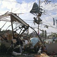 | 竜巻と見られる被害にあった民家(2日午後3時11分、埼玉県越谷市で)=読売ヘリから、高橋美帆撮影 | ![]() |