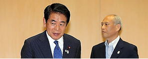 ![]() 舛添要一都知事(右)と意見交換をした下村博文文科相 =18日午前、東京都新宿区、時津剛撮影 |