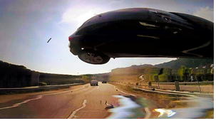 ![]() 観光バスのドライブレコーダーには、中央分離帯を越えて浮き上がった乗用車が向かってくる様子が 記録されていた(10日午前、愛知県新城市、東神観光バス提供) |