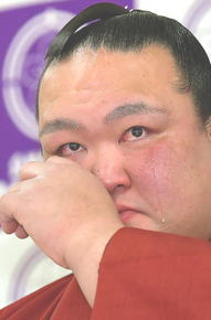 ![]() 引退を表明した会見で涙を流す稀勢の里=16日午後、東京・両国、恵原弘太郎撮影 |