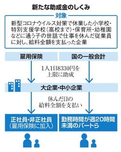 | 保護者休業、最大8330円助成 1人日額3月末まで 新型肺炎 朝日新聞の記事です。 新型コロナウイルスの感染拡大を防ぐための臨時休校が2日から全国で始まったのに伴い、厚生労働省は、仕事を休んだ従業員に給料を全額支払った企業を対象に、1人当たり日額上限8330円の助成金を出す新たな制度の概要を発表した。 正規雇用、非正規雇用を問わず助成する一方、フリーランスのスタイリストやカメラマンなどの個人事業主や、自営業者の保護者は対象外となる。(以下、省略) 本日朝刊の1面トップ記事です。 国民の税金が使われるわけです、皆さんに不平のないようにしてもろいたいものです。 休校は、安倍首相が専門家に相談したのではなく、独断で決断したようです。 このことは怖いことではないでしょうか。 |