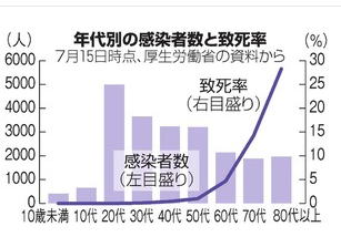| コロナ、国内死者1000人超 70代以上が84%占める 朝日新聞の記事です。 新型コロナウイルスによる日本の死者が20日、都道府県の発表集計(クルーズ船含む)で1千人を超えた。 死者の8割以上を70代以上が占め、特に80代以上は感染した約3割が死亡しており、高齢者が重症化しやすい傾向が浮き彫りになっている。(以下、省略) いずれは死者が1000人を超えるのではないかと思っておりました。 死者は親族に看取られることなく命を絶たれるようです。 東京都の感染者は168人増えました、このまま100人台で治まってくれることを願っております。 |